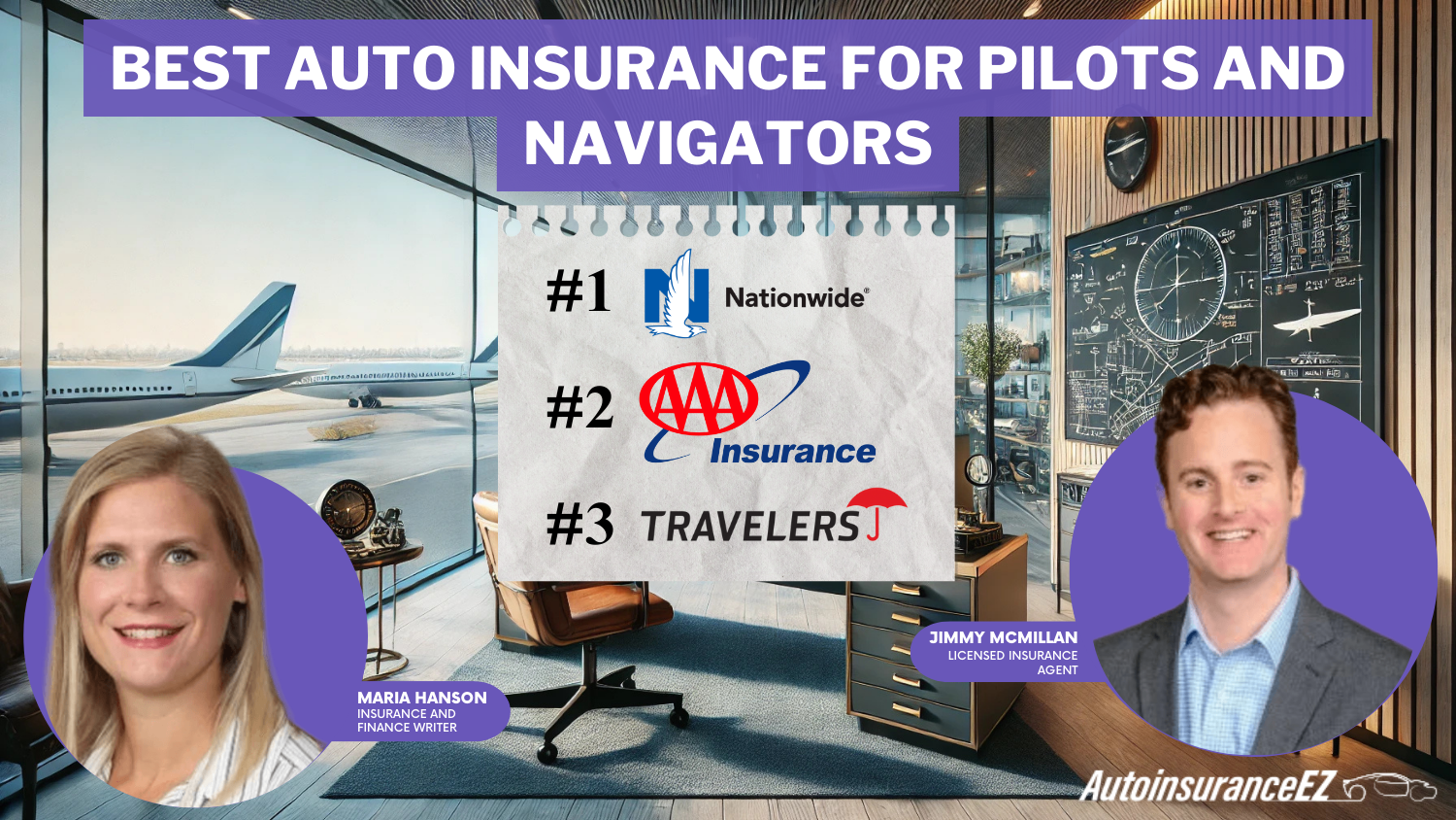 Nationwide, AAA, and Travelers have the best car insurance for pilots and navigators. Rates with Travelers start at $58 per month, making it a good choice for flexible coverage. Nationwide can help you save money with discounts, while AAA is great for its membership benefits.